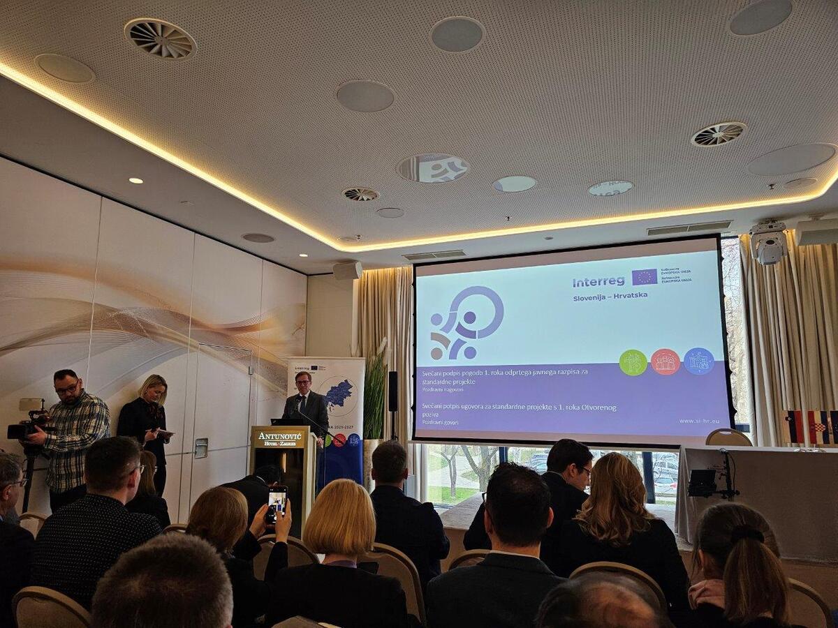 V Zagrebu je 2. marca 2026 potekala slovesnost ob podpisu Pogodbe o sofinanciranju z vodilnimi partnerji projektov, odobrenih v okviru razpisa programa Interreg Slovenija – Hrvaška 2021 – 2027.