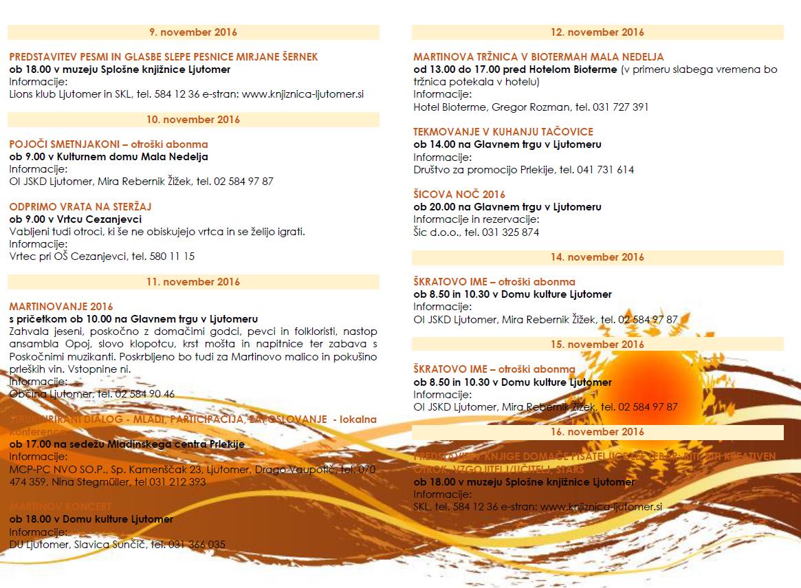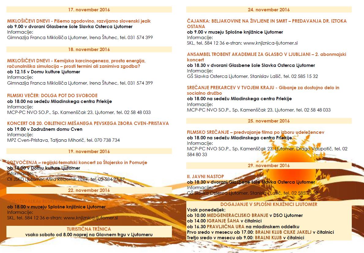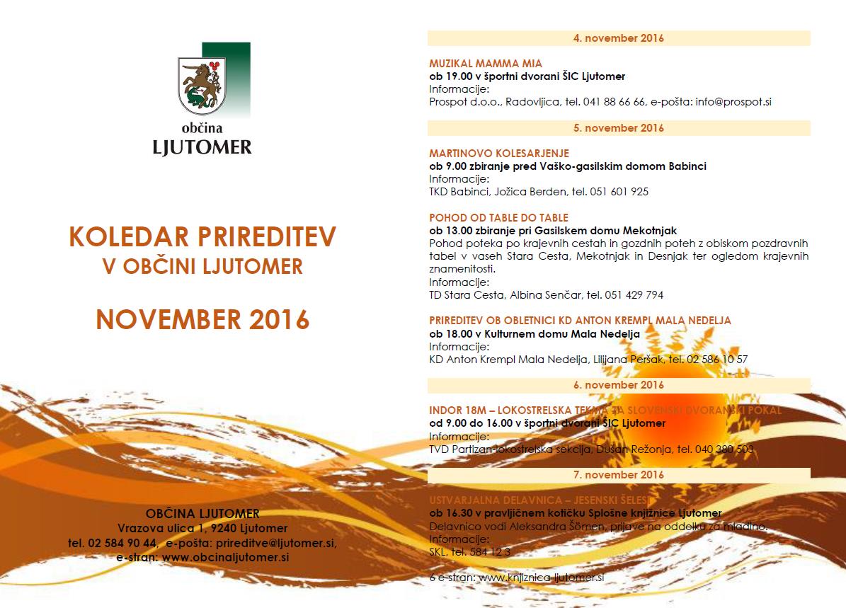Koledar prireditev v občini Ljutomer v mesecu NOVEMBRU 2016