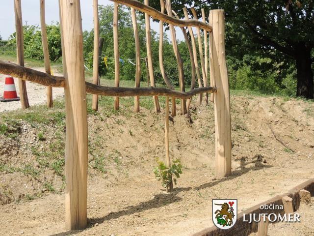 Leto nazaj so ob hiši zasadili in blagoslovili potomko najstarejše vinske trte iz Maribora, ki je med letom sicer zamenjala svoj prostor, vendar pa v Radomerščaku dobro uspeva.