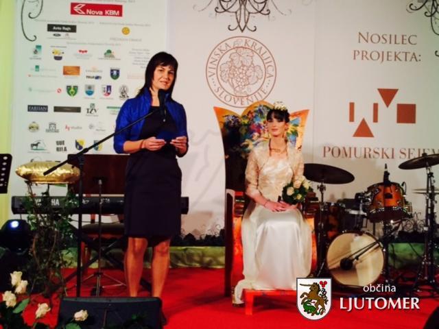 V pravo veselje je pozdraviti vse vas nocoj, posebej, ko se krona vinska kraljica, doma iz Prlekije, iz občine Ljutomer. Kajti nam, Prlekom in Prlečkam, težko izrečeš večji kompliment, kot če pohvališ naše odlično vino in našo izjemno vinarsko tradicijo. Draga Sandra, vse občanke in občani smo nate ponosni in prepričani smo, da prav tako kot si izjemno opravila vlogo prleške kraljice boš kos temu novemu izzivu. Zato iskrene čestitke. Nedvomno boš odlično nadaljevala z dobrim delom svojih predhodnic. In to delo je zelo pomembno, še bolj kot se zdi na prvi pogled...saj ne gre zgolj za priznanje in odlikovanje posameznici, ampak za zastopanje identitete slovenskega podeželja, za promocijo tradicij ter prenos pravih vrednot v širše okolje. Nocojšnji dogodek pa se obenem močno dotika tudi prihodnosti. Zadnje čase je namreč veliko govora o iskanju t.i. niš dodane vrednosti, saj bo Evropa v prihodnje večinoma financirala projekte, ki vodijo do tega cilja, do te dodane vrednosti. To se sicer lahko hitro sliši komplicirano, pa vendar v resnici zahteva zgolj to, da povemo, v čem smo kot okolje najboljši in po čem nas ljudje najbolj poznajo. Naloga torej ni pretežka, saj nas ljudje poznajo po odličnem vinu, vrhunski hrani, kvalitetnih zdraviliščih ter poštenem in marljivem delu. Povedano drugače; niša dodane vrednosti našega okolja, ...torej tisto v čem smo najboljši v Evropi, sedi danes v tej dvorani. In zato sem prepričana, da Evropa, ki stavi na naše prednosti in nam pomaga, da jih krepi, prinaša boljše čase za Slovenijo in njeno podeželje. Čestitam vam za dobro delo in želim vse dobro ter uspešno v novem letu.