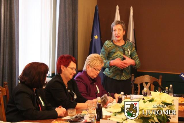 V sredo, 3. decembra 2014, je v županatu Mestne hiše, potekalo prvo srečanje županj Slovenije. Dogodek sta organizirala županja Občine Ljutomer mag. Olga Karba in Skupnost občin Slovenije. Srečanje je bilo namenjeno izmenjavi izkušenj med županjami in ženskami na položajih ter oblikovanju podpornega okolja za večjo udeležbo žensk v lokalni politiki. Srečanja se je udeležilo osem županj, poleg gostiteljice Olge Karba, še Bernardka Krnc (Šmarješke Toplice), Romana Lesjak (Črna na Koroškem), Mojca Čemas Stjepanovič (Črnomelj), Darja Vudler (Sv. Andraž v Slovenskih goricah), Milena Krajnc (Kozje), Vesna Jerala Zver (Turnišče) in Jasna Gabrič (Trbovlje). Na prvem srečanju županj, ki naj bi postale stalnica, so svoje izkušnje predstavile tudi uspešne ženske, Vika Potočnik, direktorica Pionirskega doma v Ljubljani in nekoč županja Ljubljane, Vera Kozmik, direktorica Dialog-si.net, nekoč direktorica Urada za žensko politiko ter Jasmina Vidmar, generalna sekretarka Skupnosti občin Slovenije, nekoč mestna svetnica v Mariboru.