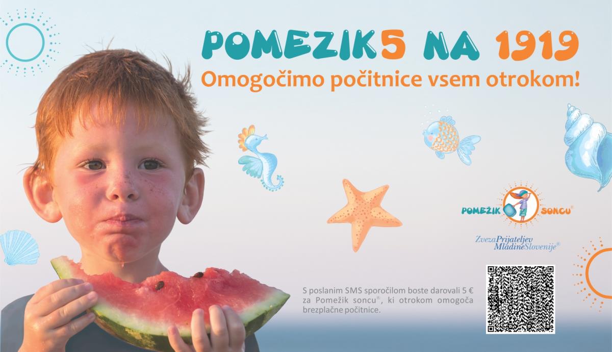 Zveza prijateljev mladine Slovenije že 23 let organizira humanitarni program Pomežik soncu®. V obdobju od leta 1999 so skozi program zbrali več kot 2 milijona EUR, na brezplačno letovanje pa je odšlo več kot 10.000 otrok. Tudi letos bi radi povsem brezplačne počitnice zagotovili 1000 otrokom. Humanitarno program poteka v času šolskih poletnih počitnic. Podrobnosti v priloženem letaku.